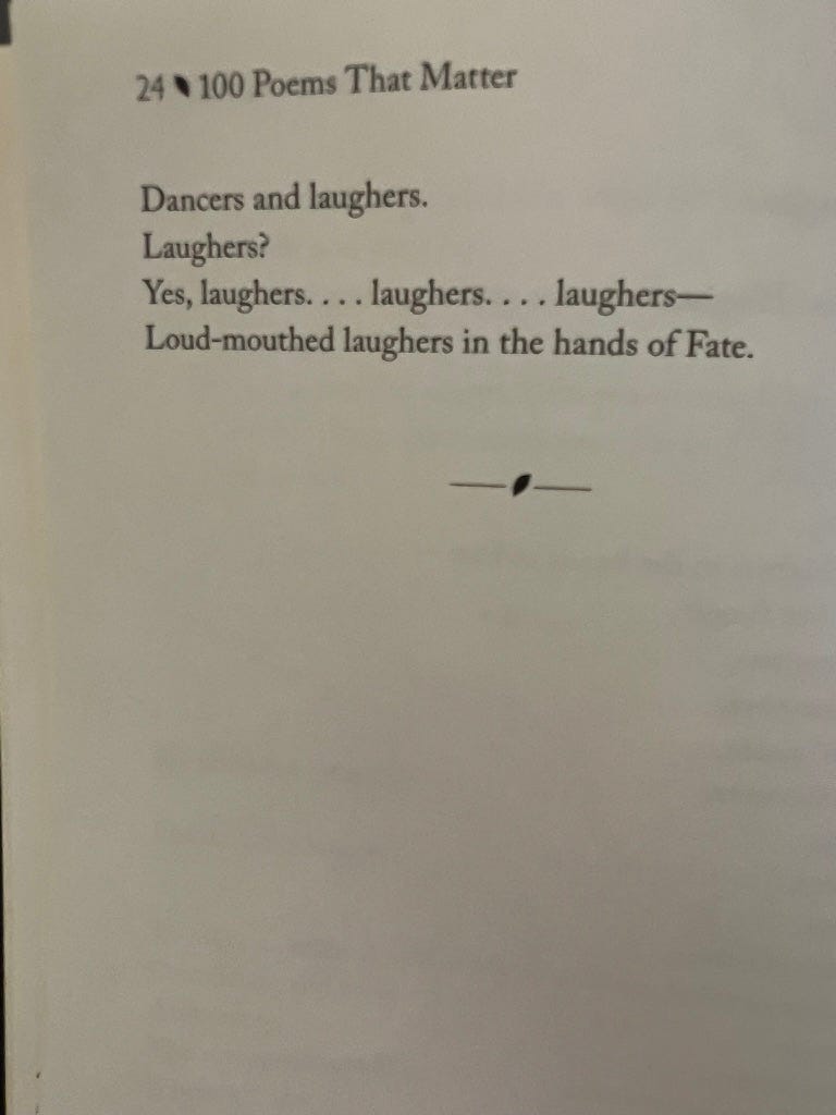 ಹಾಗೆ ಮಾಡುವ ಮೂಲಕ 'ನಗು' ಎನ್ನುವ ಸಹಜ ಕ್ರಿಯೆಯನ್ನು ಒಂದು ಅಸ್ಮಿತೆಯನ್ನಾಗಿ ಬದಲಿಸುತ್ತಾರೆ. ಅದು ಅವರ ಕರ್ತೃತ್ವಶಕ್ತಿಯ ದ್ಯೋತಕವಾಗುತ್ತದೆ. ಅವರು ಕೇವಲ ನಗುವವರಲ್ಲ; ನಗುವಿನವರೇ ಅವರು! ಮತ್ತಿನ್ನು ಇಲ್ಲಿ 'ವಿಧಿ' (fate) ಎನ್ನುವುದು ಕೇವಲ ದುರಾದೃಷ್ಟವಲ್ಲ, ಹಣೆಬರಹವಲ್ಲ; ಅದು ಅಮೆರಿಕದ ಕಪ್ಪುಜನಾಂಗದವರನ್ನು ನಿಯಂತ್ರಿಸುತ್ತಿದ್ದ ವರ್ಣಬೇಧದ ಕ್ರೂರ ದಬ್ಬಾಳಿಕೆಯ ವ್ಯವಸ್ಥೆ. ಕಿತ್ತು ತಿನ್ನುತ್ತಿದ್ದ ಬಡತನದ ವಾಸ್ತವ. ಆ ದಬ್ಬಾಳಿಕೆಯ ಉಸಿರುಗಟ್ಟಿಸುವ ಹಿಡಿತದಲ್ಲಿದ್ದರೂ, ಅವರು ಜೋರಾಗಿ ನಗಬಲ್ಲರು. ಅವರು ನಗೆಗಾರರಲ್ಲ; ನಗುವಿನವರು. ಅವರ ನಗು ಲಘು ಹಾಸ್ಯದ್ದಲ್ಲ; ಪ್ರತಿರೋಧದ ಕಸುವಿರುವಂಥದ್ದು. ಅವರ ಹಾಡಿನಂತೆ, ಕುಣಿತದಂತೆ. ಅದು ಎಂಥದ್ದೆಂದರೆ, ಎಂದಾದರೊಂದು ದಿನ ವಿಧಿಯ ಬಿಗಿಹಿಡಿತವನ್ನು ಸಡಿಲಗೊಳಿಸಬಲ್ಲಂಥದ್ದು.
