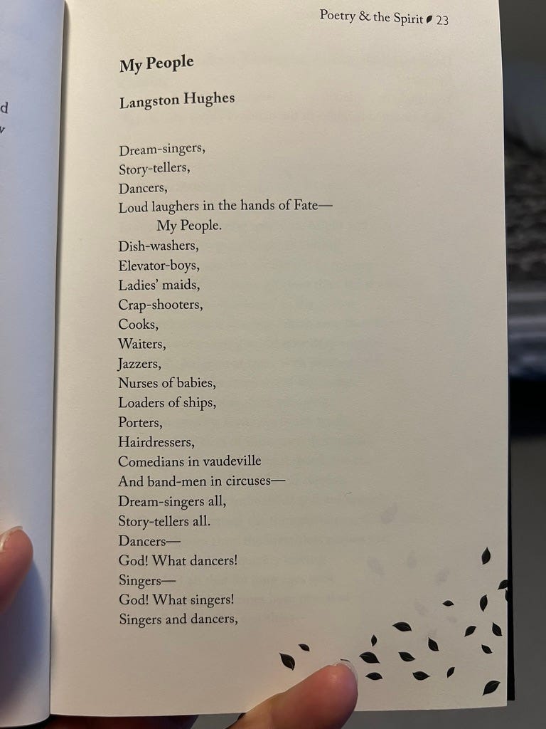 ಕಪ್ಪು ಜನರ ಆಡುಮಾತಿನ ಸೊಗಡಿನ ಜಾಜ಼್ ಮತ್ತು ಬ್ಲೂಸ್ ಹಾಡುಗಾರರು ಅವರು. ಎಂಥ ಸೊಗಸಿನ ಹಾಡುಗಳವು! ಮತ್ತಲ್ಲದೇ, ಕುಣಿತಗಾರರು. ಅಬ್ಬಾ! ಅದೆಂಥ ಬಿರುಸಿನ ಕುಣಿತ ಅವರದು ("ಭೂಕಂಪನವಾಯಿತು ಅವರು ಕುಣಿದ ಹುಚ್ಚಿಗೆ" ಎನ್ನುವಂತೆ). ಹ್ಯೂಸ್ ಇಲ್ಲಿ ಜಾಜ಼್ ರಸಿಕರನ್ನು ಮತ್ತು ಕುಣಿಯುವವರನ್ನು ಪ್ರಸ್ತಾಪಿಸುವುದು ಅವರಲ್ಲಿರುವ ಅದ್ಭುತವಾದ ಜೀವಸತ್ತ್ವವನ್ನು ತೋರಿಸಲು.