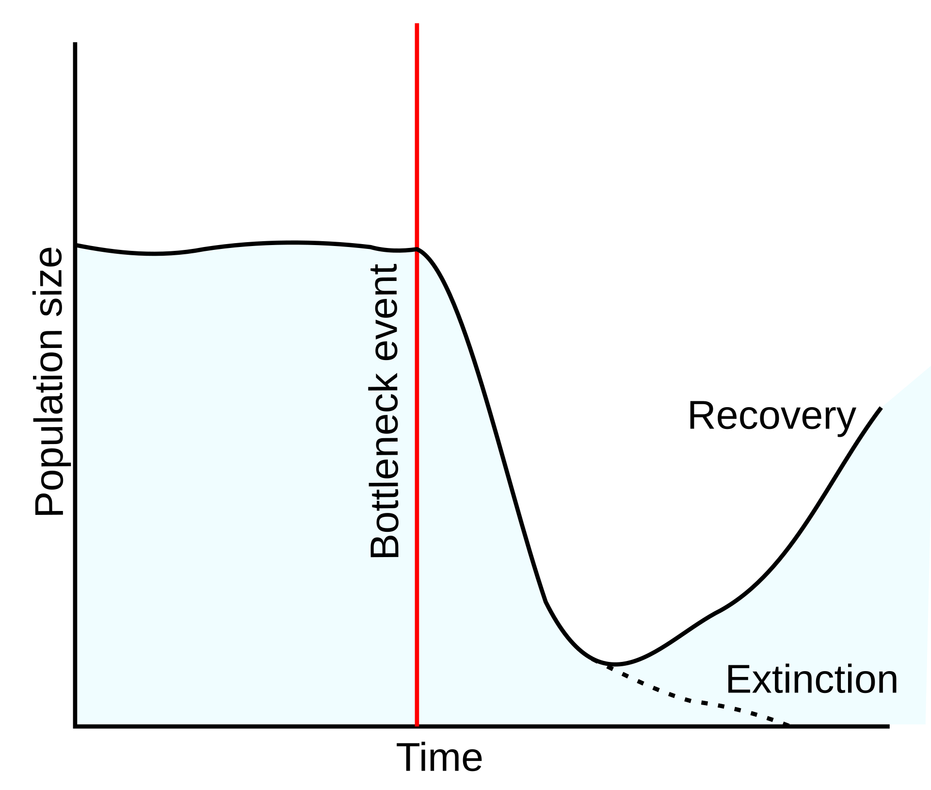 ಮಾನವನ ಚಟುವಟಿಕೆಗಳು ಇಲ್ಲವೇ ಪರಿಸರದಲ್ಲಿನ ಏರುಪೇರುಗಳು ತಂದಿಟ್ಟ ವಿಪತ್ತು; ಅಥವಾ ಮೂಲ ಇರುನೆಲೆಗಳ ನಾಶದಂಥ ಘಟನೆಗಳಿಂದಾಗಿ ಜನಸಮುದಾಯಗಳ ಗಾತ್ರವು ಒಮ್ಮಿಂದೊಮ್ಮೆಲೇ ಕುಗ್ಗುತ್ತದೆ. ಇಂಥ ವಿದ್ಯಮಾನಗಳಿಗೆ population bottleneck ಎನ್ನುತ್ತಾರೆ. ಜೀವ ವಿಕಾಸದಲ್ಲಿ ಇದು ಸಾಮಾನ್ಯ ವಿದ್ಯಮಾನ. ಹಾಗಾದಾಗ ಪ್ರಭೇದಗಳು ಅಳಿಯುವ ಸಾಧ್ಯತೆಯೂ ಇರುತ್ತದೆ. ಮಾನವ ಪ್ರಭೇದಗಳು ಅಂಥ ಹಲವು bootleneckಗಳ ಮೂಲಕ ಹಾದು ಬಂದಿವೆ. ಸುಮಾರು 800 ಸಾವಿರ ವರ್ಷಗಳ ಹಿಂದೆ ನಮ್ಮ ಪ್ರಭೇದವೂ ಅಳಿವಿನಂಚಿಗೆ ಬಂದಿತ್ತು.